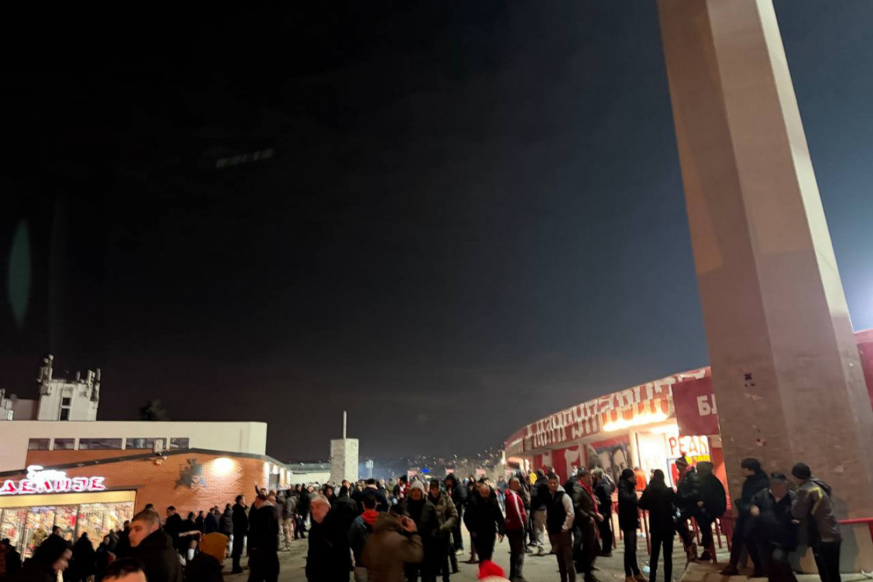 Da će grotla i biti da se naslutiti na nešto više od sat vremena pred početak utakmice. Navijači crveno-belih uveliko ispunjavaju plato oko "Rajka Mitića", sa svih strana, a jedan deo njih je već ušao i na tribine.
