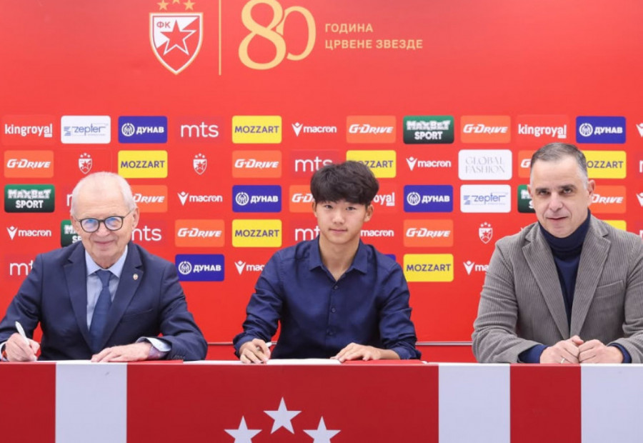 U prisustvu predsednika Crvene zvezde Svetozara Mijailovića i direktora omladinske škole Nikole Jelića, ugovor sa srpskim šampionom parafirao je ofanzivni vezni fudbaler iz Kine.