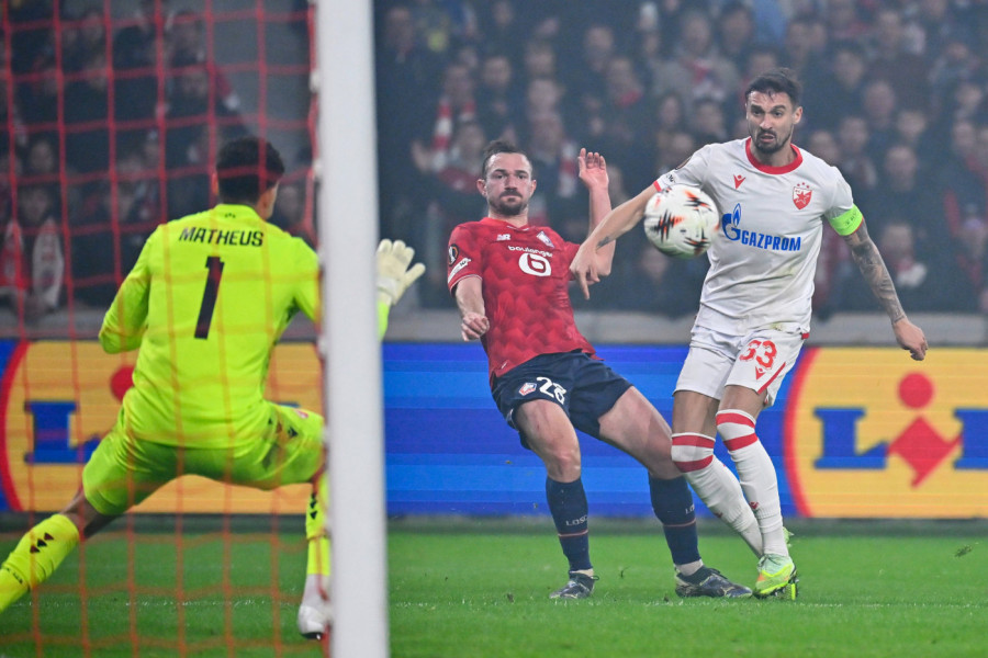 Fudbaleri Crvene zvezde su u Francuskoj savladali ekipu Lila minimalnim rezultatom, a strelac jedinog pogotka je bio Frenklin Tebo Učena u nadoknadi vremena prvog poluvremena.