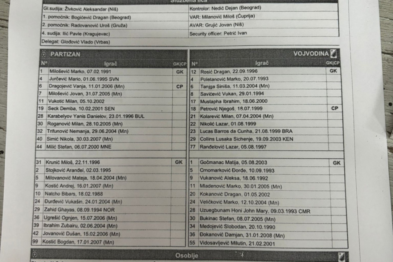 PRE POČETKA UTAKMICE: