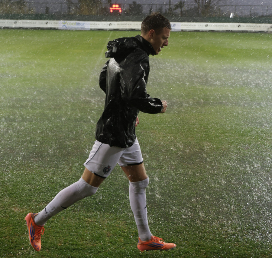 Pravi pljusak i vest o otkazivanju meča na pripremama zatekli su izabranike Nenada Stojakovića na stadionu, pa su svi bili razočarani što neće imati generalnu probu pred povratak u Srbiju. Ipak, oni su pronašli način da popune vreme. Većina njih je ipak izašla na teren i "zabavila" se po kiši trenirajući, koliko god je to bilo moguće u takvim uslovima.