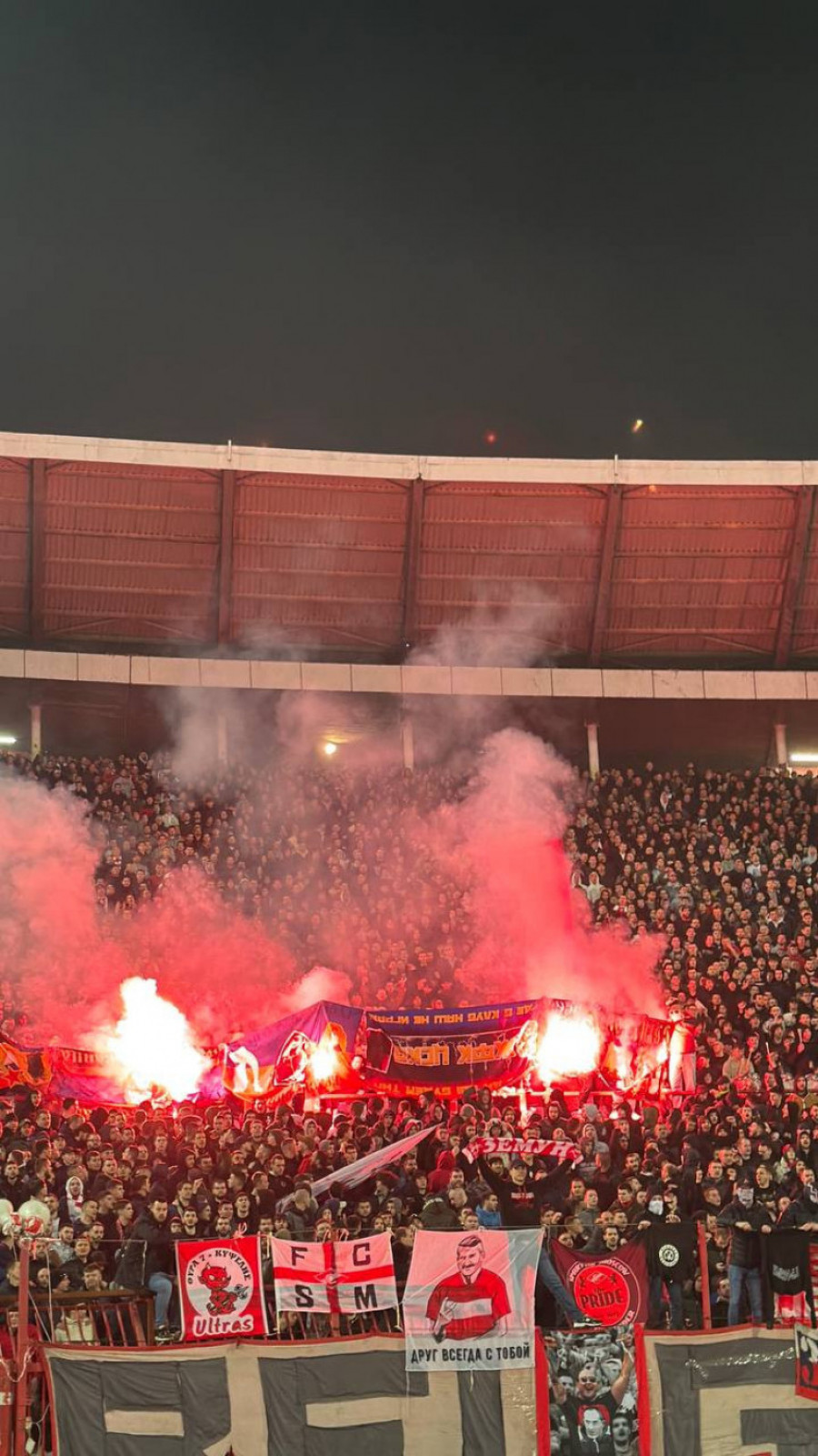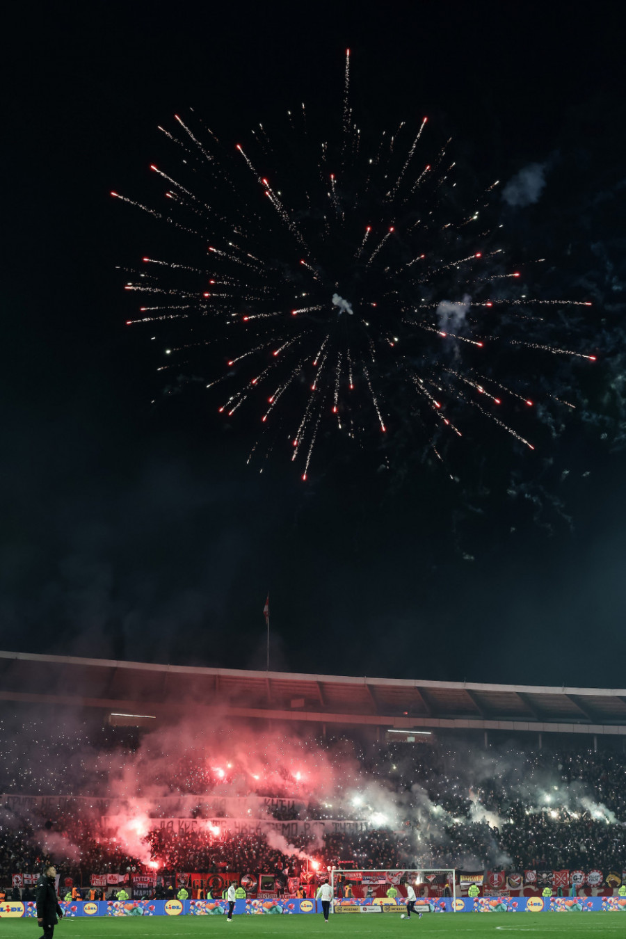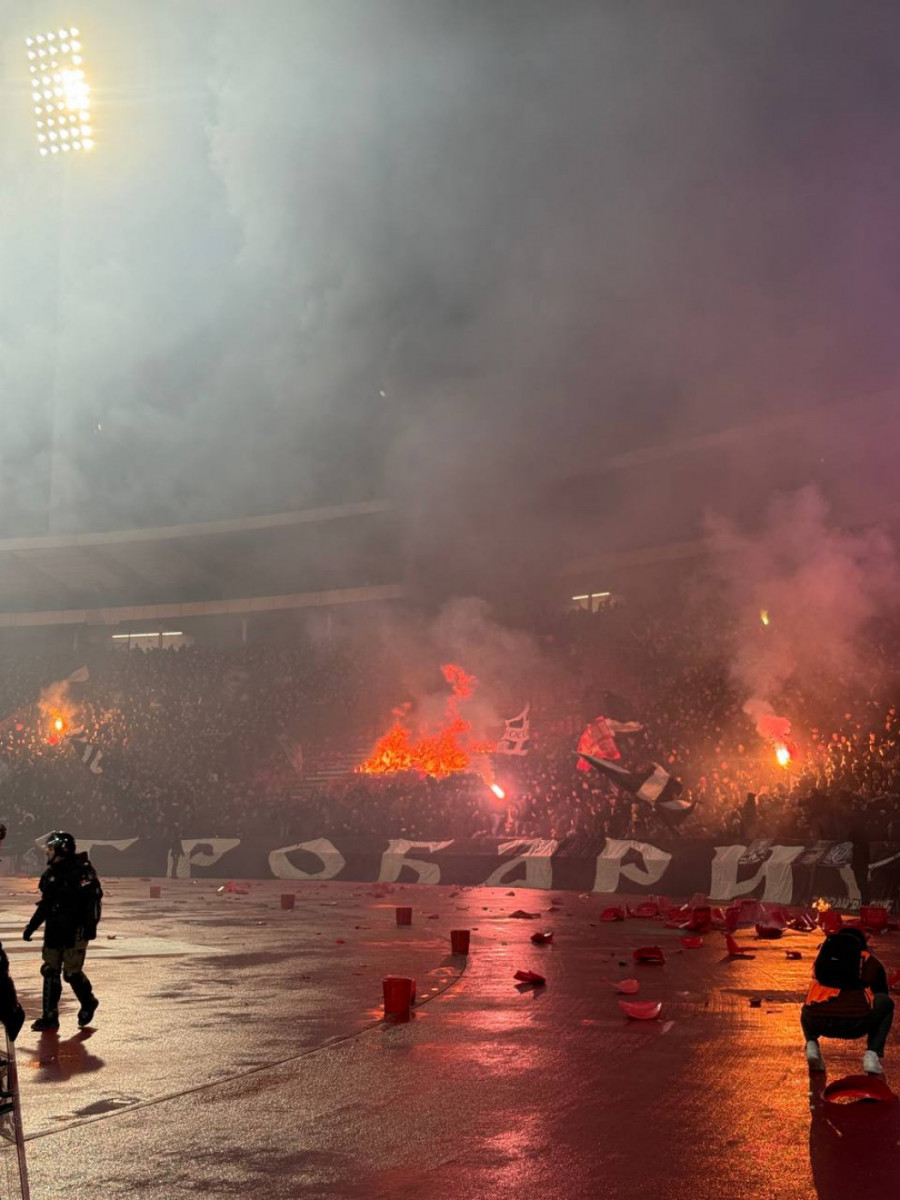 Ovakve scene, nažalost, nisu novost u duelima Crvene zvezde i Partizana, ali intenzitet paljevine na današnjem meču ozbiljno je ugrozio bezbednost svih prisutnih u južnom sektoru. Dok se na terenu vodi bespoštedna borba za svaki pedalj trave, van terena su službe bezbednosti imale pune ruke posla. Šteta na inventaru stadiona „Rajko Mitić“ biće ogromna, s obzirom na to da je uništen znatan broj stolica, a atletska staza dodatno oštećena pirotehničkim sredstvima i ostacima izgorele plastike.