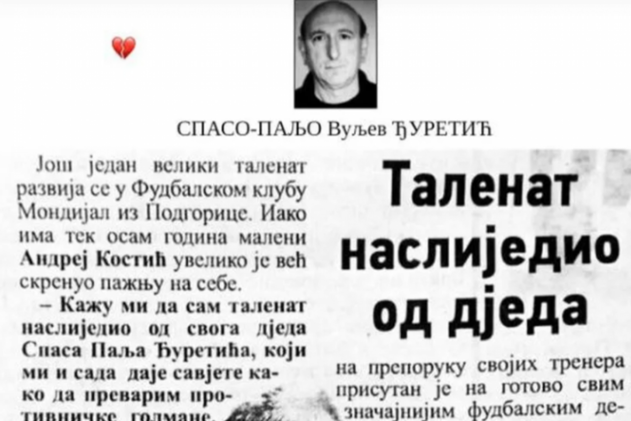 Kostić je na svom Instagram profilu podelio fotografiju čitulje, ali i isečak iz novina nastao u vreme kada je imao svega osam godina i pravio prve fudbalske korake u rodnoj Crnoj Gori. U tekstu pod naslovom 'Talenat naslijedio od đeda' već tada je govorio o snažnom uticaju koji je njegov deda imao na njegov razvoj i ljubav prema fudbalu.