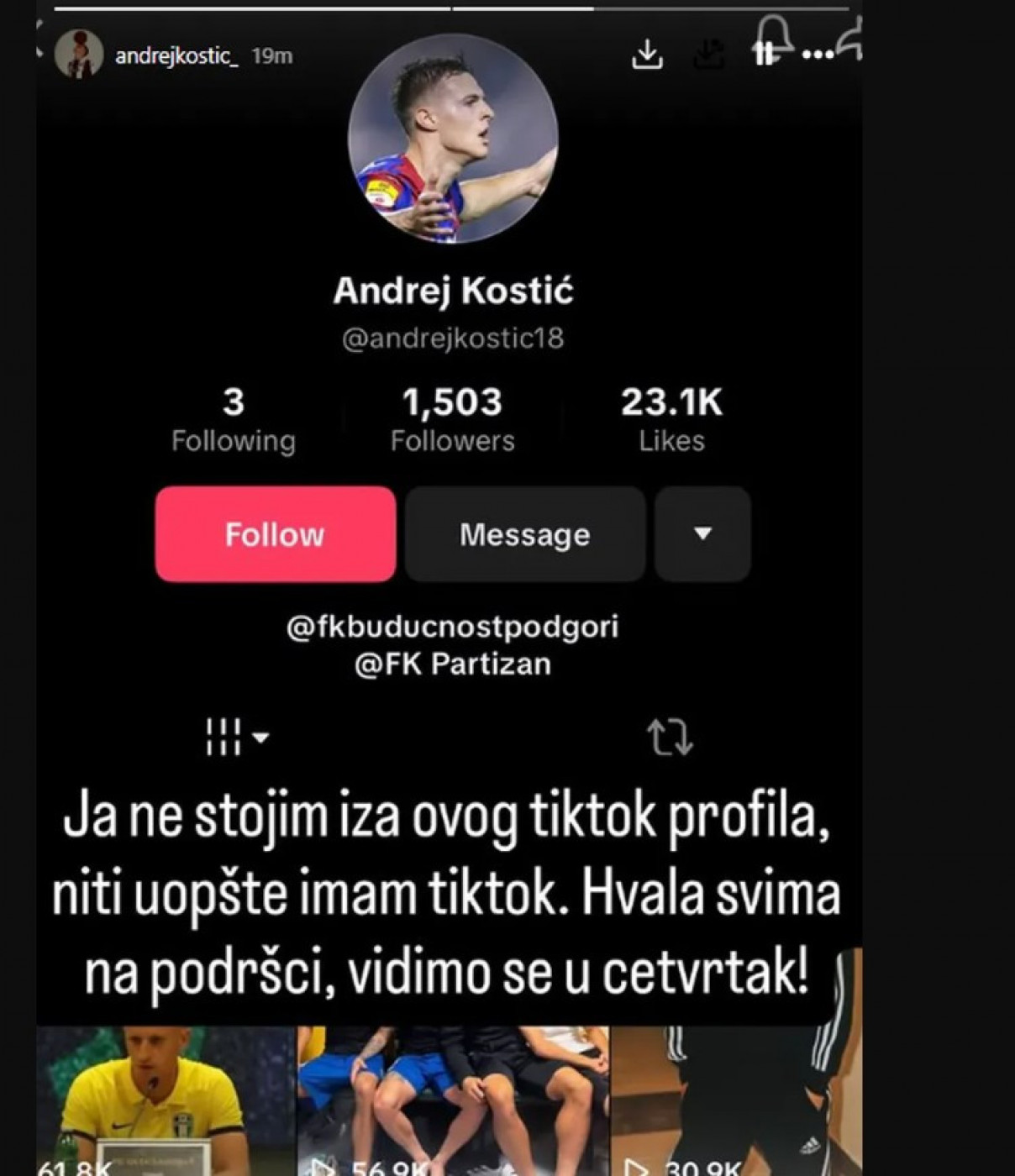 Iako je Partizan odmah reagovao saopštenjem, a sam Andrej demantovao da ima profil na toj mreži, šteta je već bila učinjena, mladi napadač je preko noći postao glavna tema u medijima, a lažne tvrdnje i provokacije nisu ga zaobišle. Ipak, buka s društvenih mreža nije omela skauting tim Milana, koji je pažljivo pratio razvoj karijere talentovanog crnogorskog fudbalera.