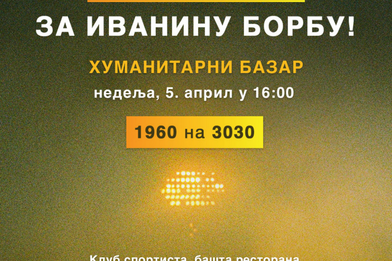 U nedelju, 5. aprila, sa početkom u 16 časova biće održan humanitarni bazar u ”Klubu sportista” u Humskoj 1. U legendarnoj bašti ispred Stadiona ”Partizan”, posetioci će moći da kupe razna umetnička dela i time doprinesu prikupljanju neophodnih sredstava za lečenje Ivane Đokić.
