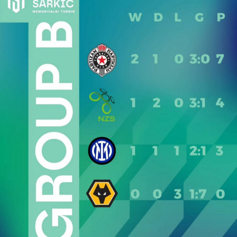 Crno-beli su turnir završili sa 7 bodova, drugoplasirana je bila reprezentacija Slovenije sa 4 boda, Inter je imao 3, dok je Vulverhempton izgubio sva tri meča i turnir završio bez bodova.