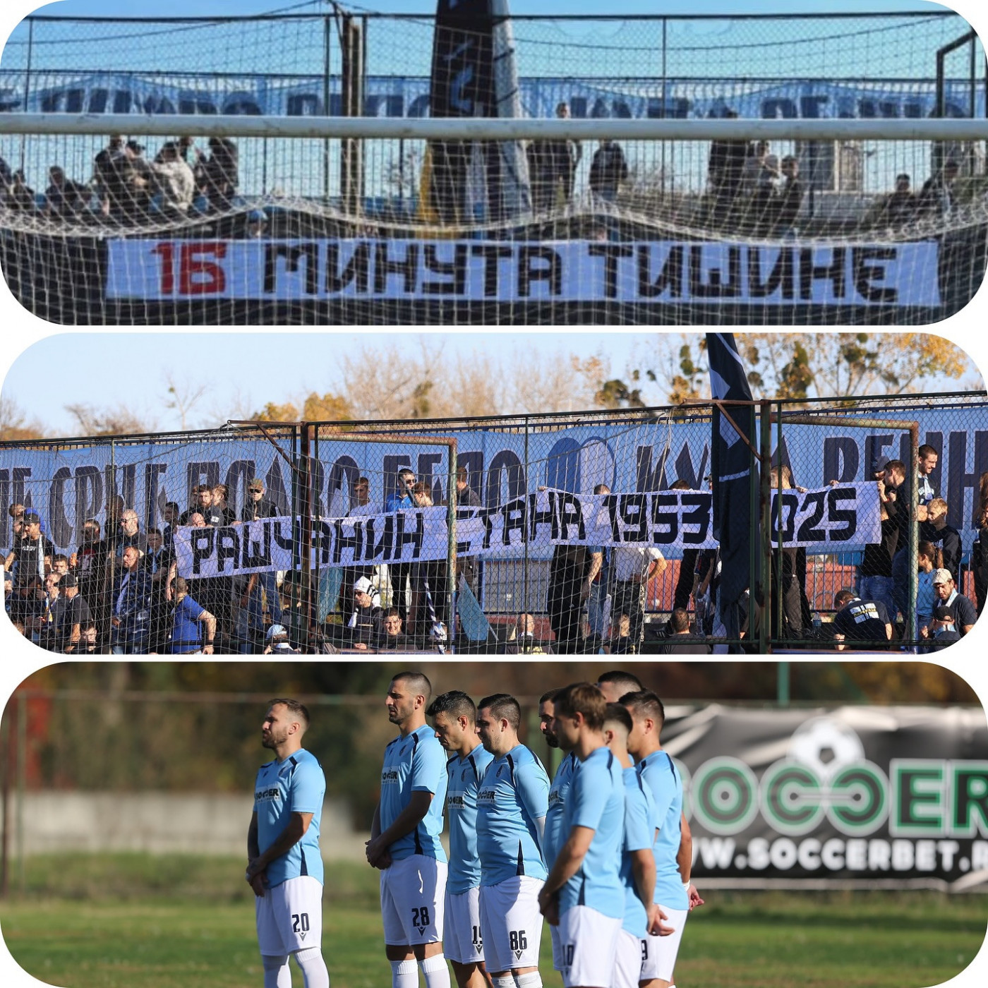 Tokom prvih 16 minuta utakmice - tišina. Bez pesme, bez bubnjeva, samo poštovanje za sve koji su tragično izgubili život prošle godine u padu nadstrešnice u Novom Sadu.