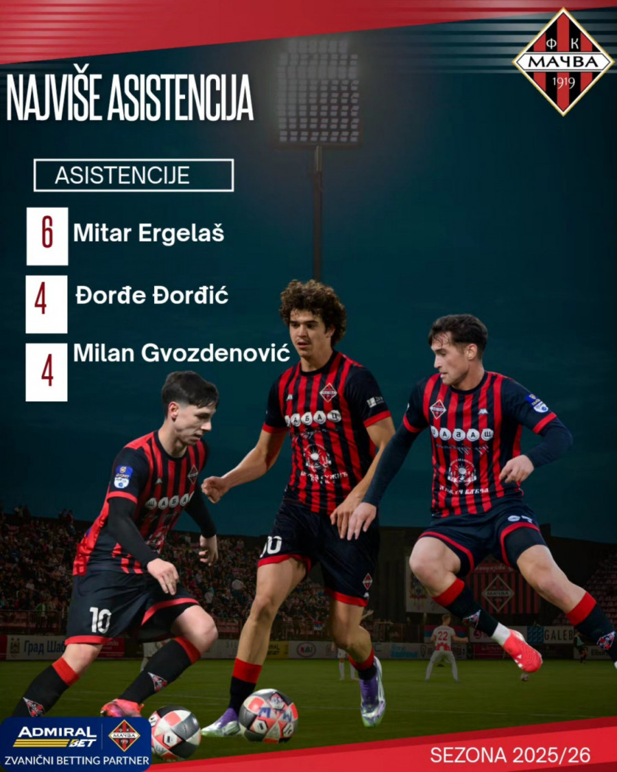 Na listi asistenata nalaze se dva fudbalera koji su u TOP 3 po broju golova, što je jako interesantan podatak. Ergelaš je i tu na vrhu sa šest ključnih dodavanja, dok su po četiri puta u ulozi asistenata bili Đorđić i MIlan Gvozdenović.
