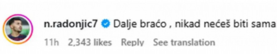 - Dalje braćo, nikada nećeš biti sama - napisao je Nemanja Radonjić na društvenoj mreži Instagram.