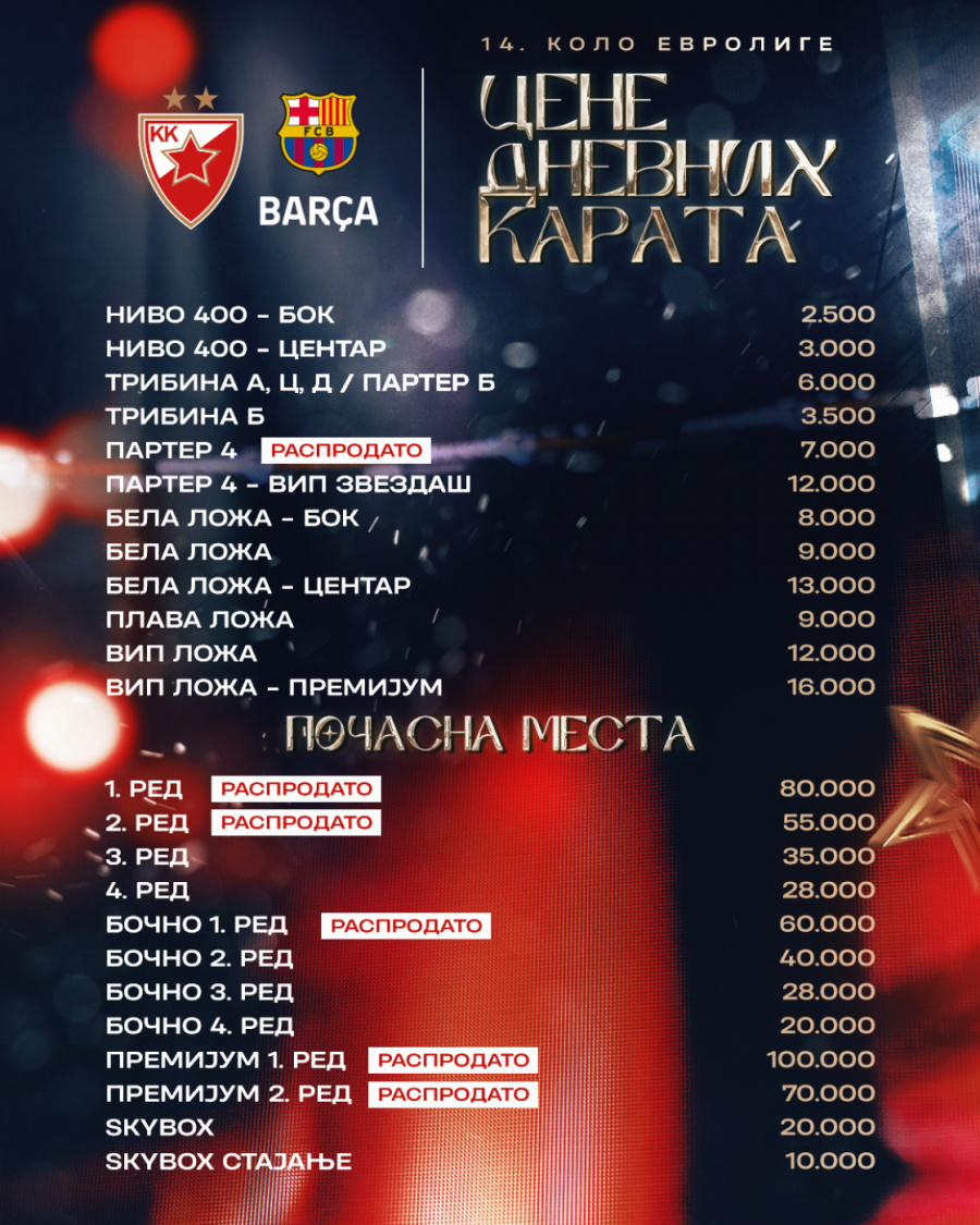 - Prodaja karata za ovaj duel počinje u utorak 02.12.2025. godine u 12 časova, i trajaće sve do početka utakmice.