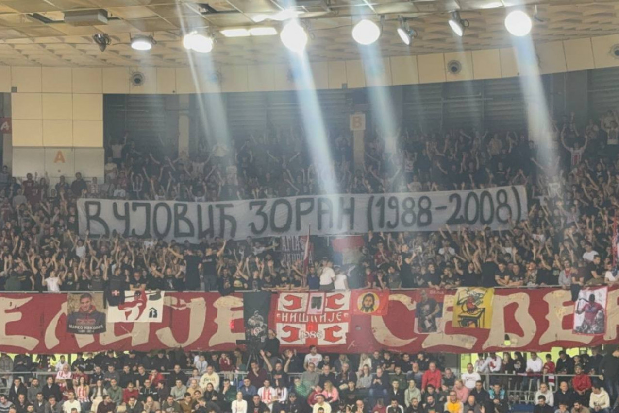 Zvezdaši su skandirali njegovo ime, a istakle su i transparent kakav se mogao videti kod grobara - Vujović Zoran (1988-2008).