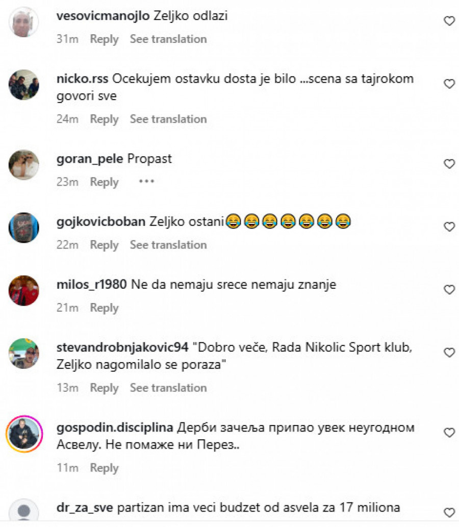 Poraz u Vilerbanu je prilično razočarao i iznervirao najvatrenije pristalice kluba iz Humske, a odmah po okončanju meča društvene mreže su preplavili komentari u kojima veliki broj onih kojima su crno-bele boje na srcu, ističu: