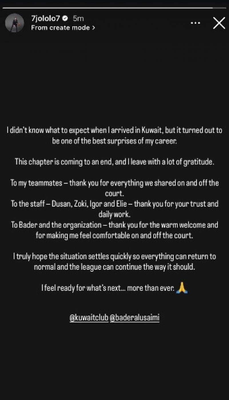 - Nisam znao šta da očekujem kada sam stigao u Kuvajt, ali se ispostavilo da je to jedno od najlepših iznenađenja u mojoj karijeri. Ovo poglavlje se bliži kraju i odlazim s velikom zahvalnošću. Mojim saigračima - hvala vam na svemu što smo zajedno prošli na terenu i van njega. Stručnom štabu - Dušane, Zoki, Igore i Eli, hvala vam na poverenju i svakodnevnom radu. Baderu i klubu - hvala na toploj dobrodošlici i što ste učinili da se osećam prijatno i na terenu i van njega. Iskreno se nadam da će se situacija brzo rešiti kako bi se sve vratilo u normalu i liga nastavila onako kako treba. Spreman sam za ono što sledi... više nego ikad - napisao je Lover i zagolicao maštu navijačima.