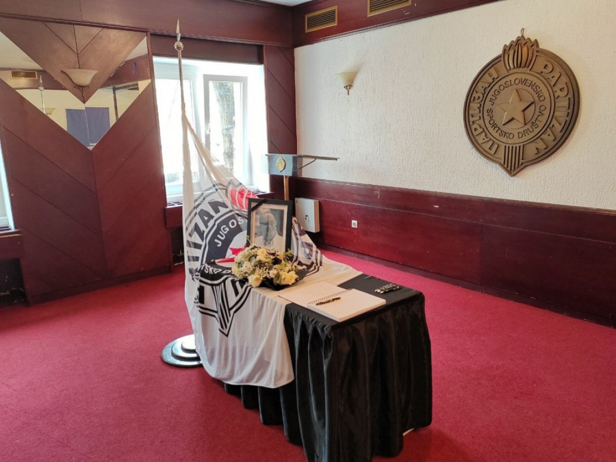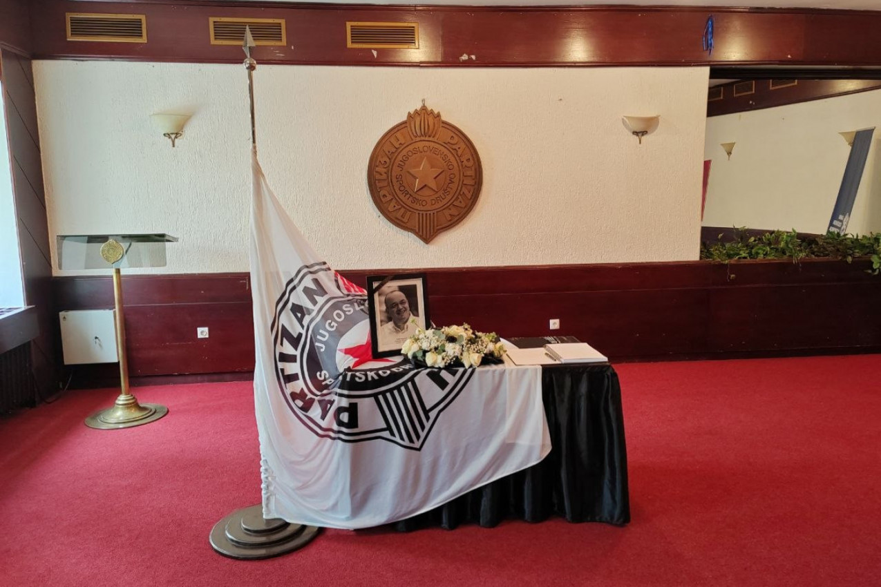 Od Duleta mogu da se oproste obični poštovaoci njegovog lika i dela, i to na stadionu Partizana, u prostorijama JSD Partizan, gde je otvorena knjiga žalosti, o kojoj smo pisali OVDE. Oprostio se i Sportissimo od Vujoševića, a jedan detalj u sablasno tihoj prostoriji, pored Duškove slike i zastave Partizana, naterao nas je da se naježimo i da nam oči zasuze.
