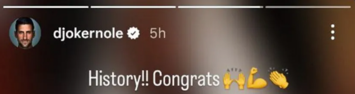 - Istorijski! Čestitam - napisao je Novak, oduševljen činjenicom da granice ljudskih mogućnosti u sportu očigledno ne postoje.