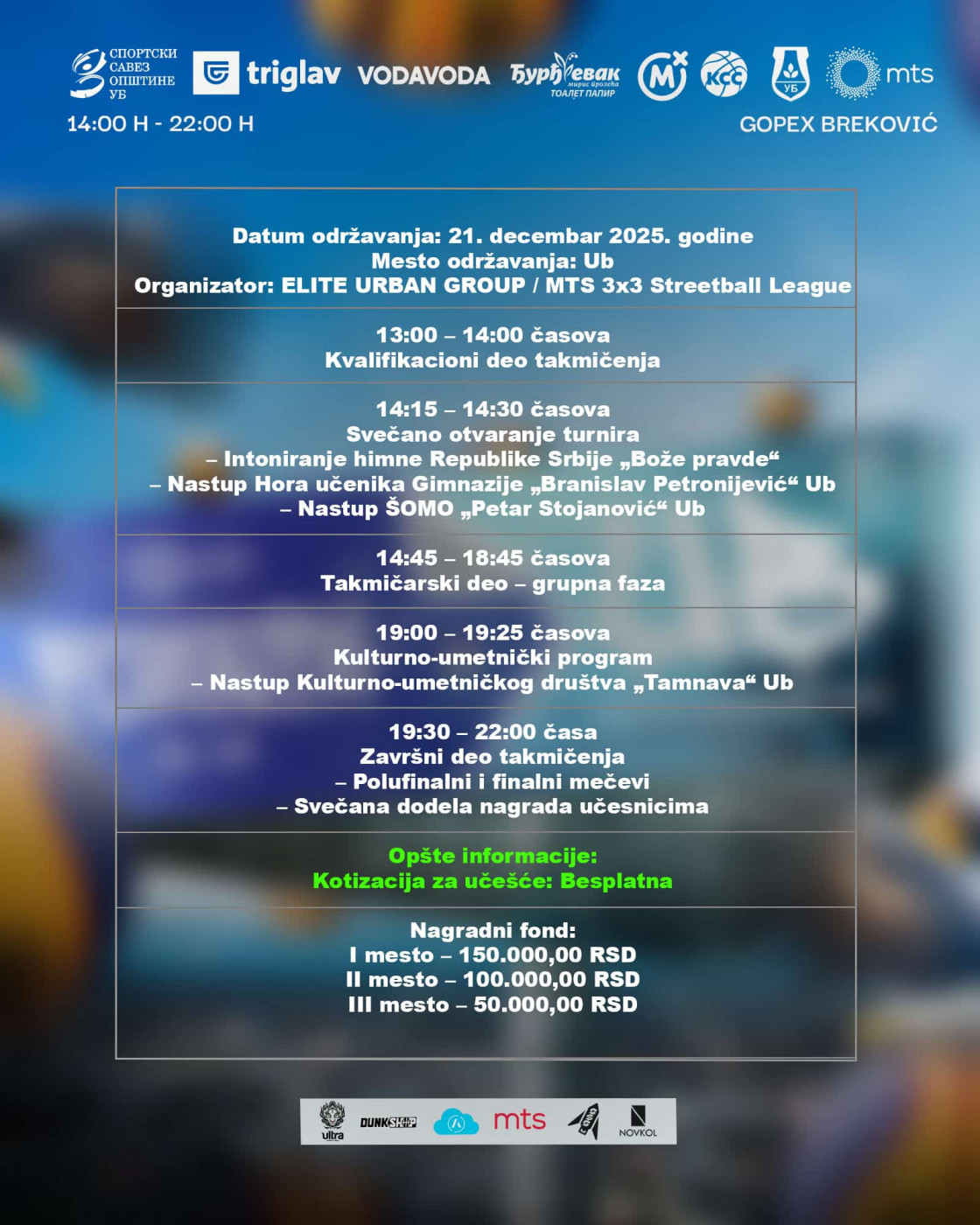 U nedelju, 21. decembra, opština Ub postaće epicentar srpske i regionalne 3x3 scene. Elite Urban Group, uz punu podršku Košarkaškog saveza Srbije i institucija Republike Srbije, zvanično otvara MTS 3x3 Zimsku ligu, koja će brojati šest turnira plus veliko finale, a cela liga biće održana upravo u opštini Ub.