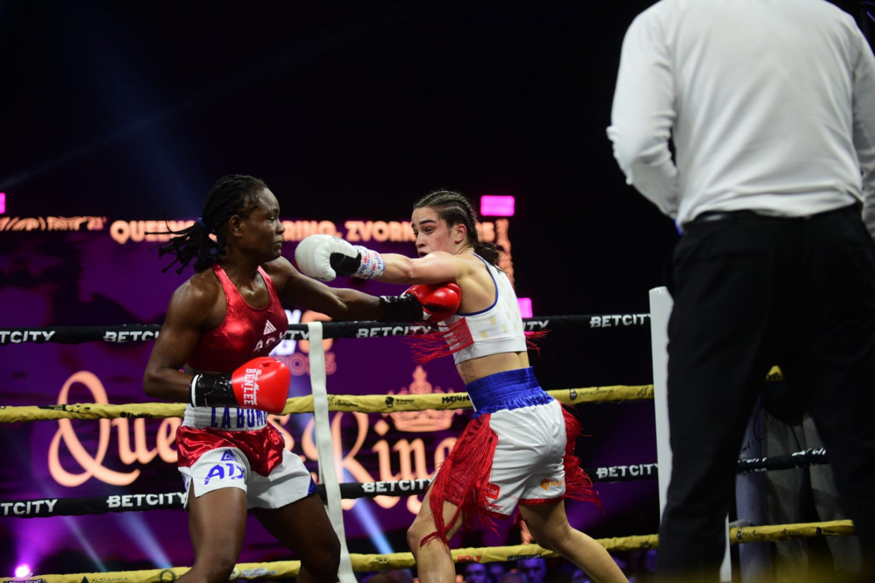 Glavna borba večeri donela je sudar prve zvezde ženske boks selekcije Srbije, naše najtrofejnije bokserke Sare Ćirković, IBA Pro svetske šampionke, aktuelne seniorske i mlađeseniorske prvakinje Evrope u olimpijskom boksu i nezgodnom latinoamerikankom, Sajde Milica Moskero Kuestom (10-6-1, 7 KO) iz Paname, poznatom po nadimmku “La bomba”.