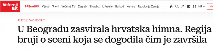 - Dok su odjekivali prvi taktovi hrvatske himne, umesto zvižduka koji su znali da prate ovakve događaje u prošlosti, dvoranom je vladala tišina. Ali, ono što je usledilo iznenadilo je mnoge, na samom kraju intoniranja sa tribina se prolomio aplauz, civilizovan i sportski pozdrav hrvatskoj reprezentaciji i himni - prenosi Večernji list" u tekstu pod naslovom "U Beogradu zasvirala hrvatska himna, region bruji o sceni koja se dogodila čim je završila".