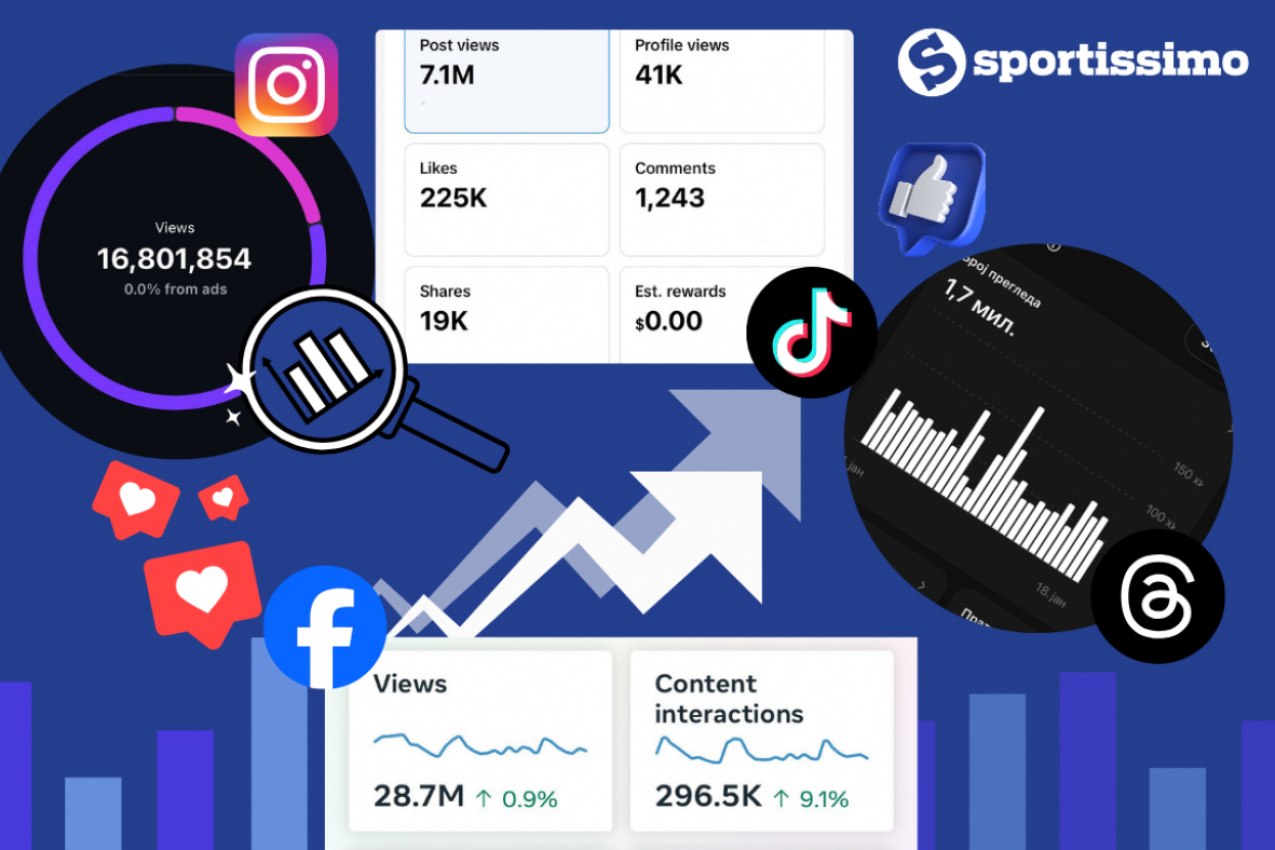 Sportissimo nastavlja da gazi! Najnoviji podaci zvanične Meta analitike, kao i ostalih društvenih mreža potvrđuju snažno prisustvo Sportissima na društvenim mrežama, zahvaljujući kvalitetnom sadržaju i ljudima koji nas prate.
