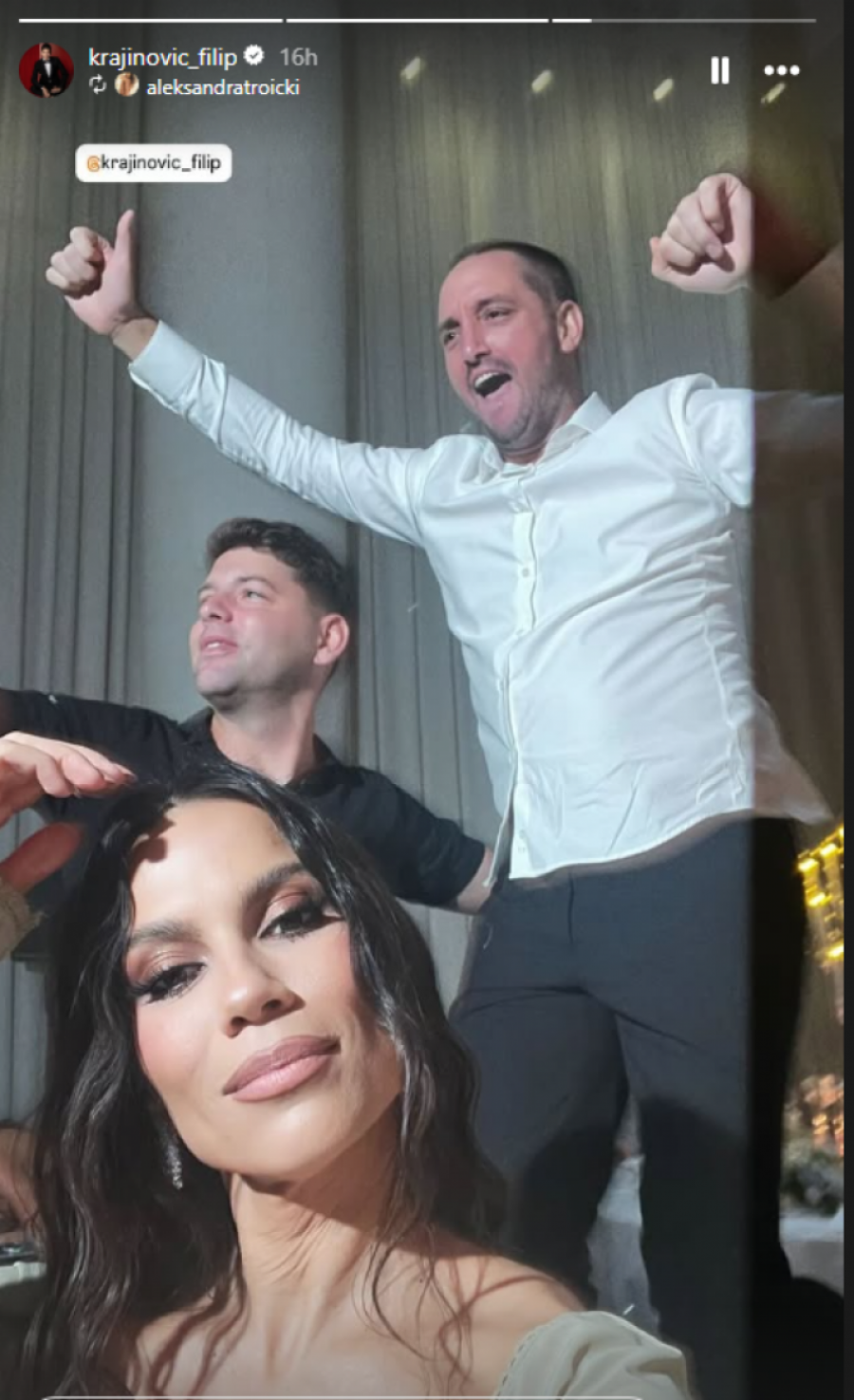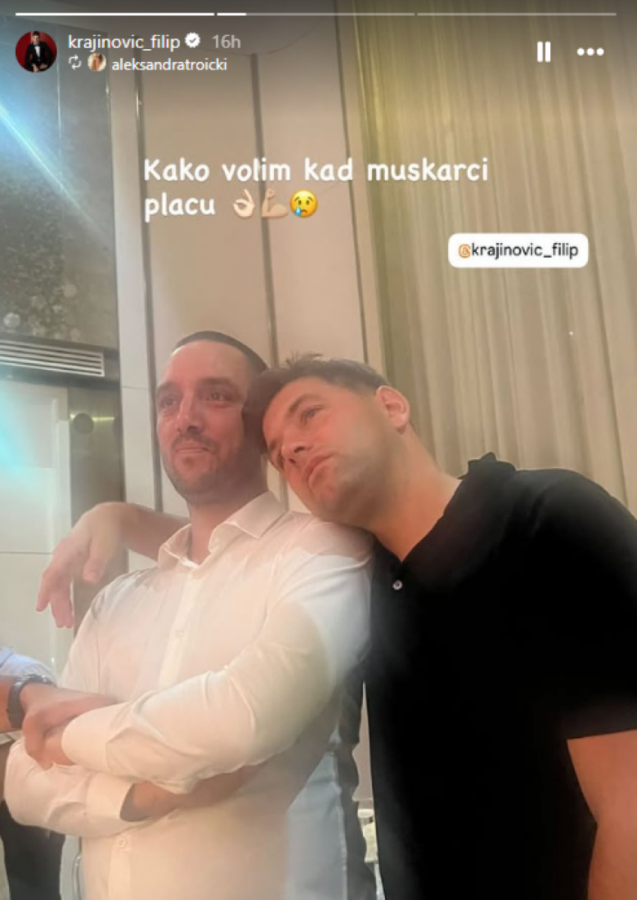 Supruga Viktora Troickog, Aleksandra, aktivno je objavljivala kadrove sa svadbe, a jedan od najupečatljivijih trenutaka bio je onaj kada su Troicki i Krajinović zagrljeni, sa suzama u očima. Delovalo je da su u potpunosti pustili emocije, dirnuti srećom svog prijatelja.