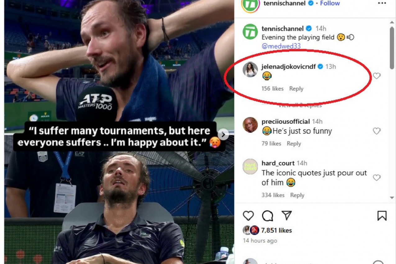 Na jedan od postova koji prenose ovu izjavu reagovala je i Jelena Đoković, supruga Novaka Đokovića. Ona je samo stavila emotikon koji plače od smeha.