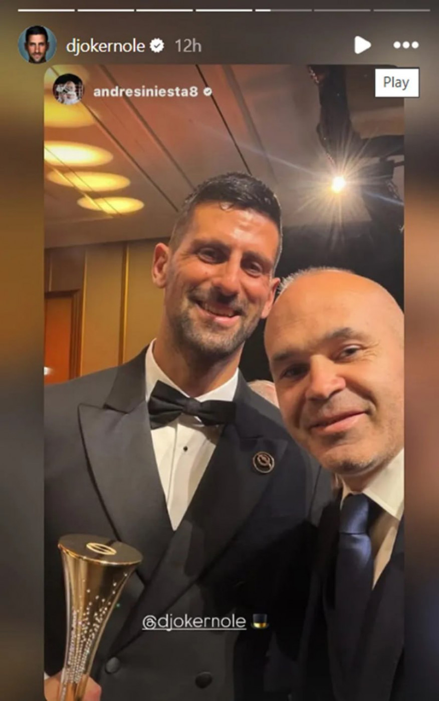 Među prisutnima su bile i brojne fudbalske legende, a posebnu pažnju privukao je susret Đokovića sa Andresom Inijestom, jednim od najvećih igrača u istoriji Barselone i španskog fudbala. Nekadašnji maestro sredine terena završio je igračku karijeru 2024. godine u klubu Emirates, a boravak na gala večeri iskoristio je da se fotografiše sa Đokovićem, što je potom podelio na društvenim mrežama.