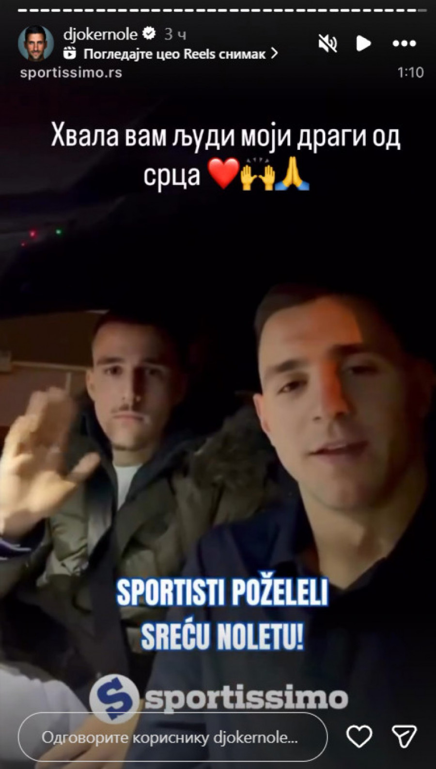 Putem Sportissima beojni sportisti su se oglasili i poslali Đokoviću želje pred današnje finale Otvorenog prvensta Australije, a sada se puten društvene mreže Instagram, obratio i sam Novak koji je našem portalu poručio: