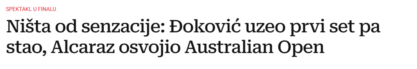 Kada je Novak Đoković poražen od Karlosa Alkaraza, hrvatski mediji su se odmah dohvatili pera.
