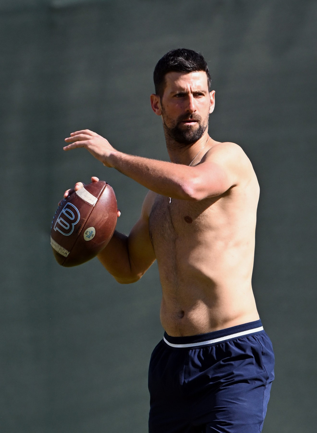 Domaćini u Indijan Velsu ostali su šokirano kada se Novak skinuo go iznad pojasa, zbog nesnosnih vrućina o kojima smo pisali OVDE, a onda uze loptu za američki fudbal i pokazao šta sve zna sa njom u maniru NFL kvoterbekova. I dok su muškarci mogli da komentarišu kako se snalazi u za nas nepopularnom sportu, dame su mogle da bace pogled na njegovo telo.